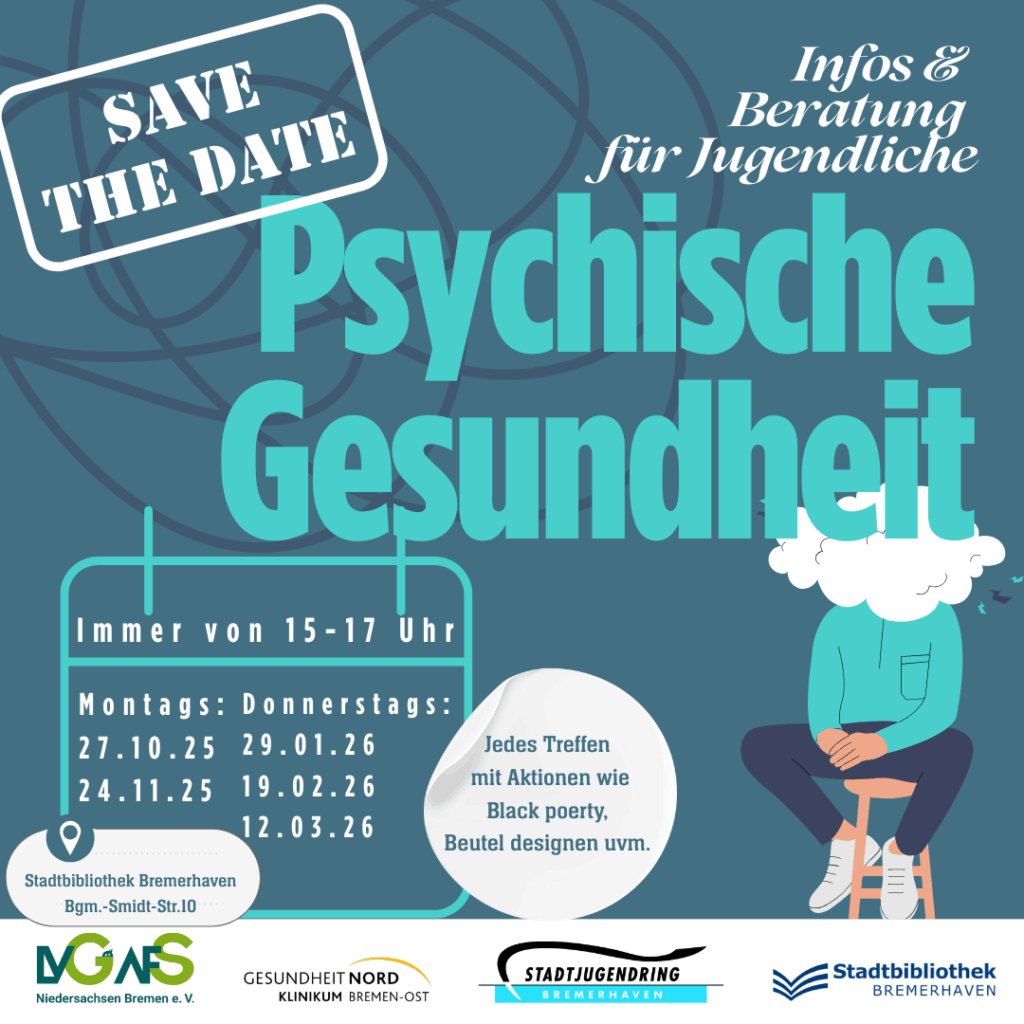 Info und Beratung für Jugendliche 🧠💬 Du hast Fragen zu deiner psychischen Gesundheit? Fühlst dich manchmal überfordert, gestresst oder einfach nicht verstanden? Bei unserer Veranstaltung findest du Infos, Beratung und Antworten – ganz ohne Druck. ✨ Gleichzeitig kannst du dich kreativ austoben. 🎨🎶 Komm vorbei und entdecke, was dir guttut! 💚 Veranstaltet wird das Projekt […]